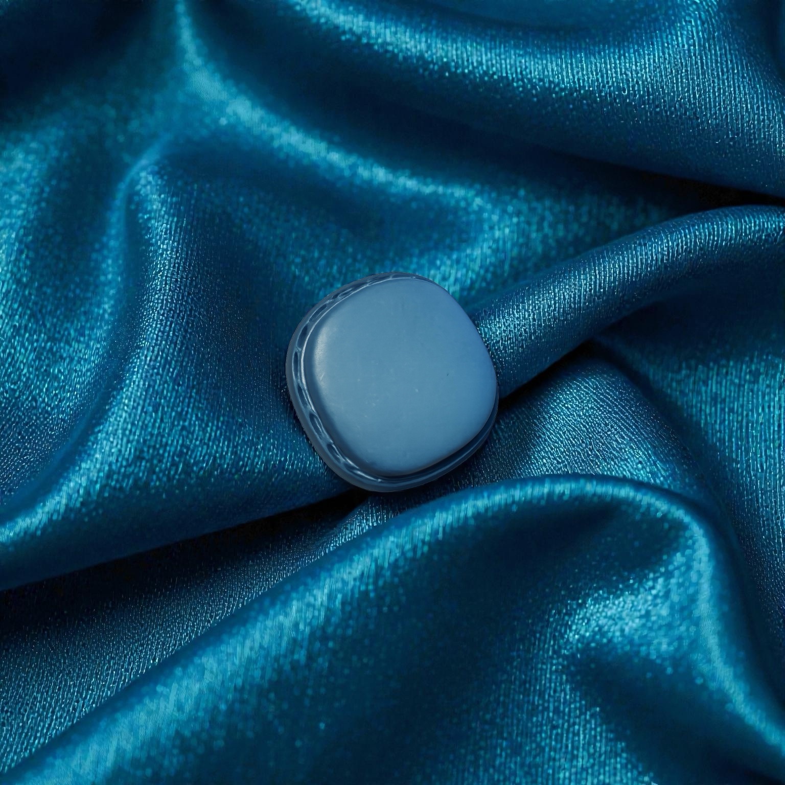 Deze petrol knoop kan ieder colbertje naar een next level tillen. Ook zou hij prachtig staan op een mooie wollen mantel. De knoop is vierkant met afgeronde hoeken en heeft een soort nepstiksel aan de zijkant.